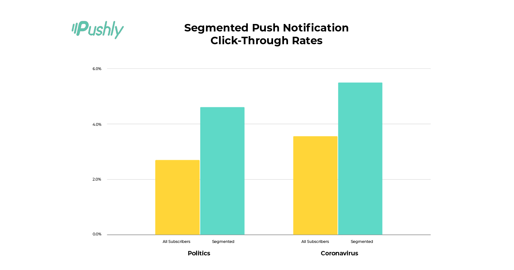 Bottom line: Pushly’s Segmentation allows you to send more Notifications and generate more traffic from users who are interested in a specific topic, while sparing the fatigued users more Notifications.